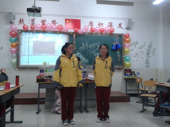 12月23日下午,初2015届与初2016届英语特色小班联合举办圣诞联欢会。全体英语特色班73名学生以及两名英语任课老师和部分任课老师班主任等都参与到此次活动中。联欢会为全英文形式,主持人的主持词,所有节目,以及观众互动都是以英文形式呈现的。节目形式多样,内容新颖:首先以八年级一班的一个小品《together》拉开了帷幕。随后七年级一班窦文悦和石雨菡的古筝合奏《渔舟唱晚》更是增添了联欢会的艺术氛围。在中间的几个环节里,集体活动如击鼓传花,抢凳子,心有灵犀等都把此次联欢会带入了高潮。更激动人心的是每位学生及老师都带来了一个礼物,这75个礼物被随机编号,然后在联欢会上被每位学生重新抽取,这样每位学生都会得到一个神秘圣诞礼物。此活动也为该联欢会增添了许多乐趣。在联欢会的最后,全体同学以一首“Merry Christmas”为本届圣诞联欢会画上了完美的句号。