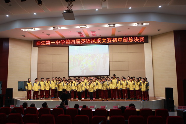 2013年12月20日下午,曲江一中第四届英语风采大赛初中组总决赛在报告厅如期举行。参赛班级在个人演讲、情景对话、电影配音、歌曲演唱及班级大合唱五个环节展示了各班学生独特的英语实力和个人魅力。