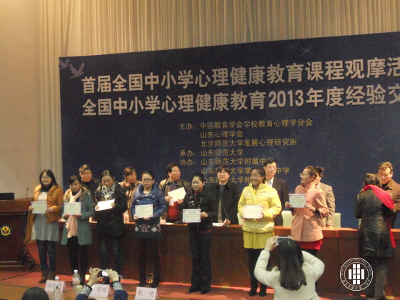 为认真贯彻《国家中长期教育改革和发展规划纲要(2010-2020)》的精神,真正落实教育部2012年12月颁布的《中小学心理健康教育指导纲要(2012年修订)》的要求,为了交流全国中小学心理健康教育的实践成果,推动广大教师研究中小学心理健康教育,为优秀的中小学心理教师提供展示的平台,2013年11月22-24日,由中国教育学会学校教育心理学分会、山东心理学会及北京师范大学发展心理研究所联合主办的首届全国中小学心理健康教育课程观摩活动暨全国中小学心理健康教育2013年度经验交流会在山东济南举行。此次会议由来自美国、香港及我国26个省、市、自治区、直辖市的400多名中小学心理健康教育专家、学者、一线教师代表参加,我校心理教师李嫩晓应邀参会。