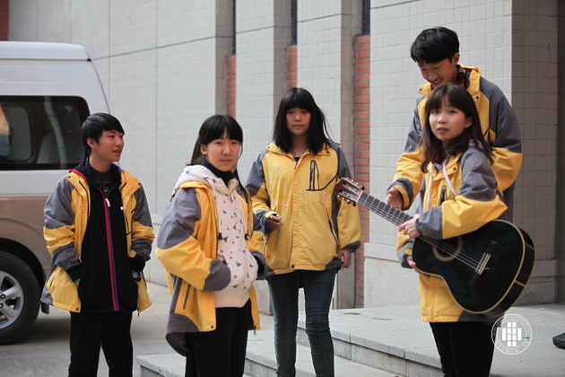 高2016届同学在场外聚精会神地为自己的表演做最后的准备