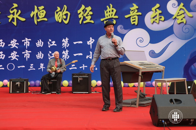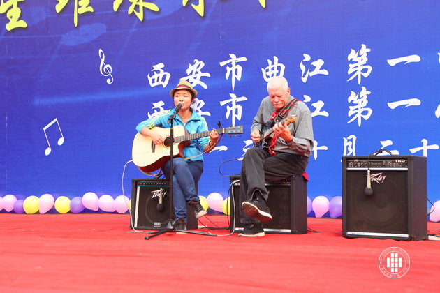 在美妙的旋律中,曲江一小六年级2班周毅同学也上台献艺,他的一曲大提琴独奏——《天鹅》,让美国友人喜出望外。曲江一中高2015届封奕彤同学与著名流行歌星凯尼·斯毕克斯(Kenneth Speakes)的吉它弹唱激荡着一颗颗青春学子的心。曲江一中高2016届谭滋月同学父女同台演奏的劲曲震撼豪放,引起了全场轰动。陕师大附中郭伟老师一曲《阳光路上》驱走了深秋时分的丝丝寒意。曲江新区教育卫生局局长郭军一首《生死相依 我苦恋着你》将音乐会推向了新的高潮。37首经典曲目,热烈奔放,激情四射的表演感染着现场的所有观众,演出在一片欢呼声中圆满落下帷幕。