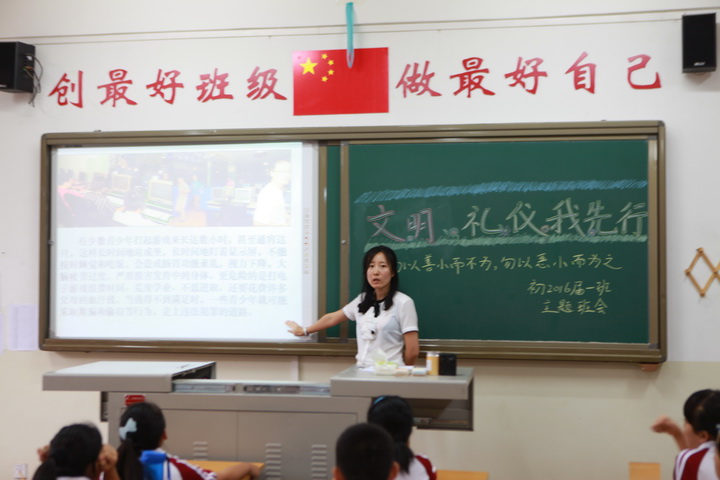 为了提高我校学生讲文明、知礼仪的行为规范,给全校营造一个良好的学习与生活环境,促进学生在德、智、体、美、劳等方面全面发展,2013年9月4日下午,我校举行了以“文明礼仪与校风校纪”为主题的班会。