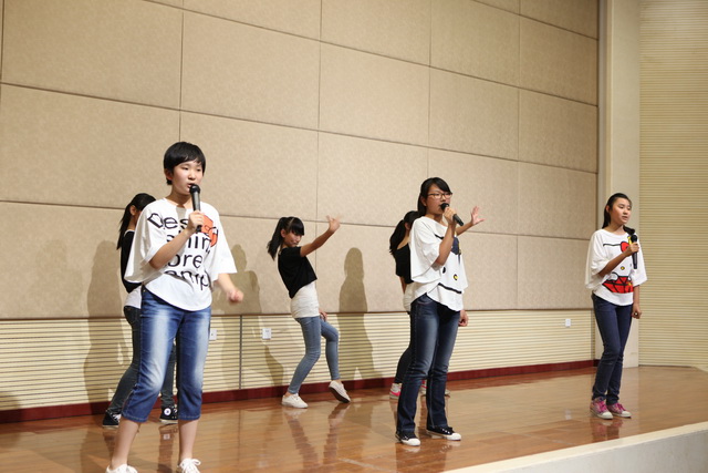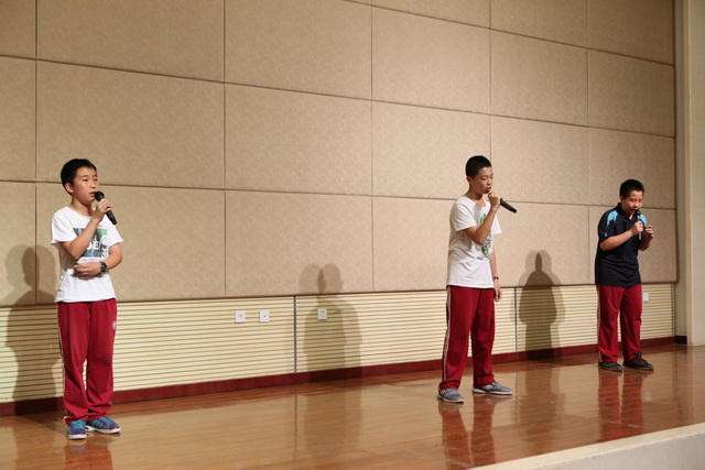 比赛由初一七班的王碧萱、武怡璠、李泳怡等同学一首《串烧》拉开序幕,她们愉悦的歌声、甜美的笑容,迅速点燃了现场的气氛。接着初一五班的《那些年》,初一三班的《串烧》,和初二四班《红日》等等歌曲纷纷登台亮相,台上时而悠扬深情,时而活力四射,台下时而侧耳倾听,时而掌声雷动,现场气氛节节升温。