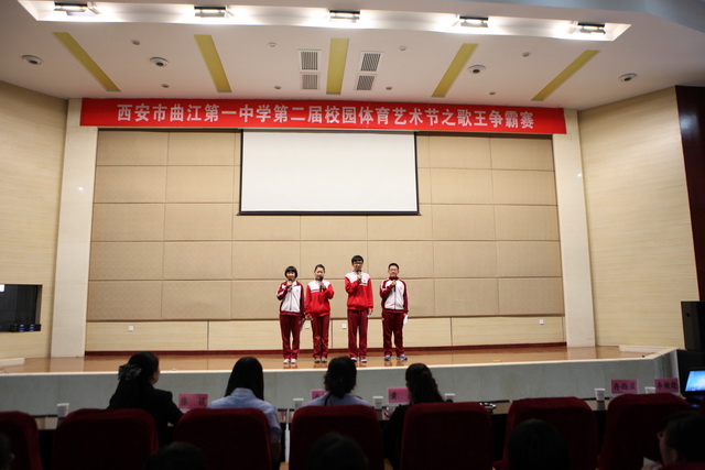 歌声渗透喜悦,感染离愁;歌声承载梦想,唱响希望。2013年5月30日,云开雨霁,艳阳初露,曲江一中的报告厅传来阵阵悠扬的歌声与热烈的掌声,这是曲江第一中学第二届校园体育艺术节之歌王争霸赛的现场。在这梦想的舞台上,七、八两个年级18组选手,代表自己的班级正在争夺“歌王”之霸,正各展风采,分享着他们的喜悦与梦想。