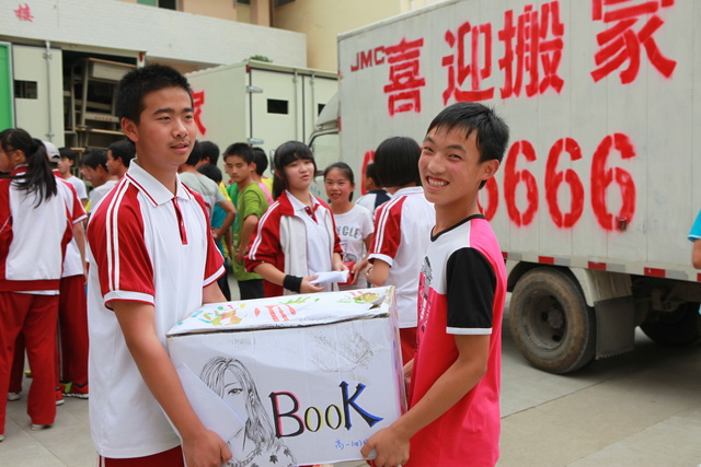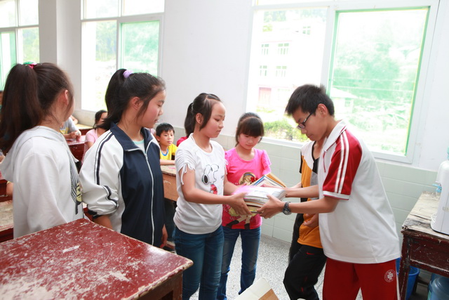 我校高2014届同学向漩涡中学八年级七班同学赠送班级书箱