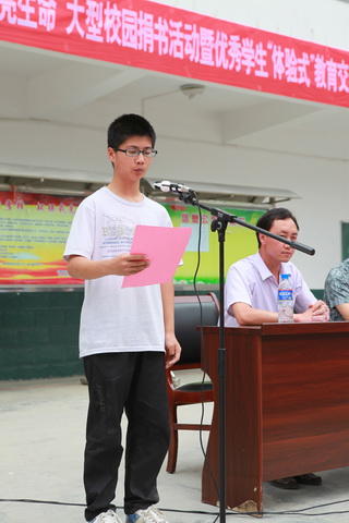 曲江一中学生会主席王宇飞代表曲江一中同学宣读《给漩涡中学师生的一封信》
