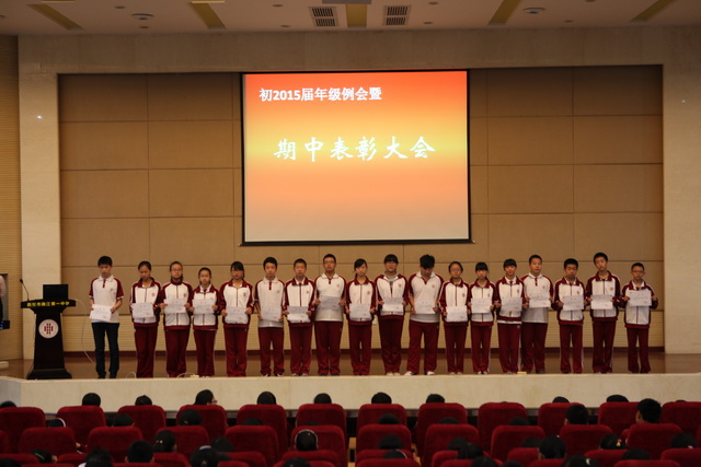 会议由初2015届组长张洁老师主持。她深情回顾了全体学生两个月以来的所取得的成绩和进步,充分肯定了运动会上的拼搏和团体协作精神,对前半学期表现优秀的班级、个人进行了表彰。