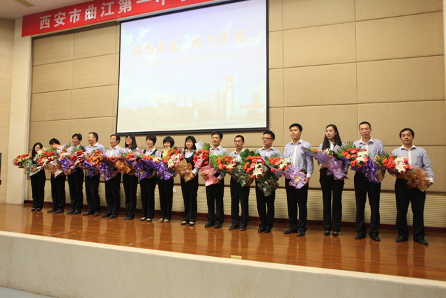 清风送爽,细雨霏霏。5月17日,西安市曲江第一中学高2013届毕业典礼在学校报告厅隆重举行。曲江新区管委会教育卫生局局长郭军、曲江一中常务副校长陈勇刚、副校长曹琦、学校办公室兼政教处主任余爱东、教务处兼招生办主任朱琳瑛、学校办公室副主任申小娟、教务处副主任兼高三年级组长高秋棉、政教处副主任兼九年级组长刘瑜、教研室副主任兼高一年级组长刘公潜及高2013届全体师生一起度过这个令人难忘而感动的时刻。
