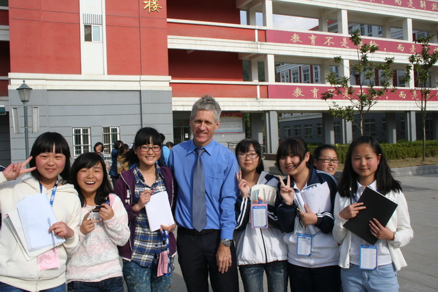 香港汉基学校外籍教师GLEN MORGAN(莫艮年)为宁强县天津高级中学同学上历史课
