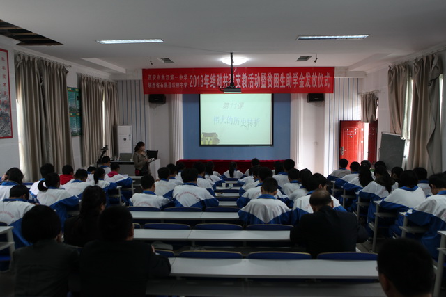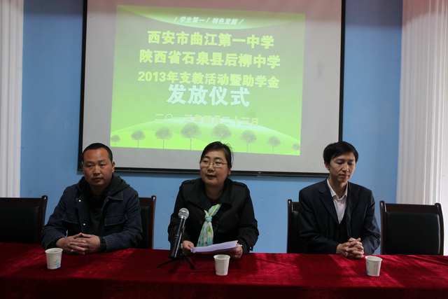 曲江一中资助石泉县后柳中学贫困生助学金发放仪式在后柳中学报告厅成功举行 |