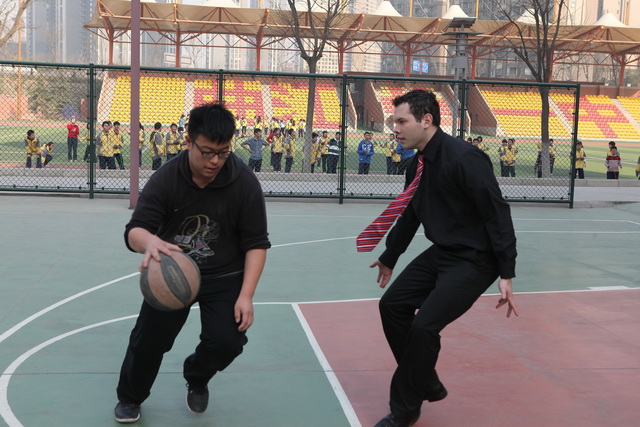 加拿大实习教师与学生会副主席单宇航切磋球技