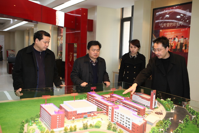 2013年1月24日下午,渭南市教育局局长党福奎、经济技术开发区党工委副书记王小平一行4人对我校考察交流。我校校长边团结、常务副校长陈勇刚、副校长曹琦热情接待了党局长一行。
