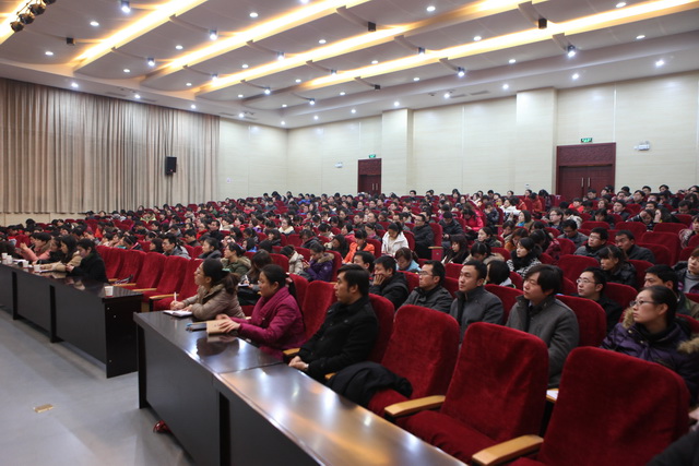 12月13日9时,西安市教育局团委邀请陕西省高校思想理论教育首席专家、西北大学哲学与社会科学学院博士生导师李刚教授在我校报告厅对400名西安市中小学的团委书记和少先队大队辅导员代表做了题为“中国特色社会主义道路、理论和制度创新与自信——学习党的十八大报告体会”的报告。共青团西安市委副书记胡玥出席报告会。报告会由共青团西安市委学少部部长柴艳荣主持,曲江一中全体政治教师聆听报告。