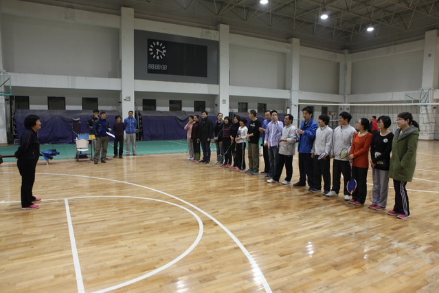 教务处主任朱琳瑛宣布羽毛球赛开赛