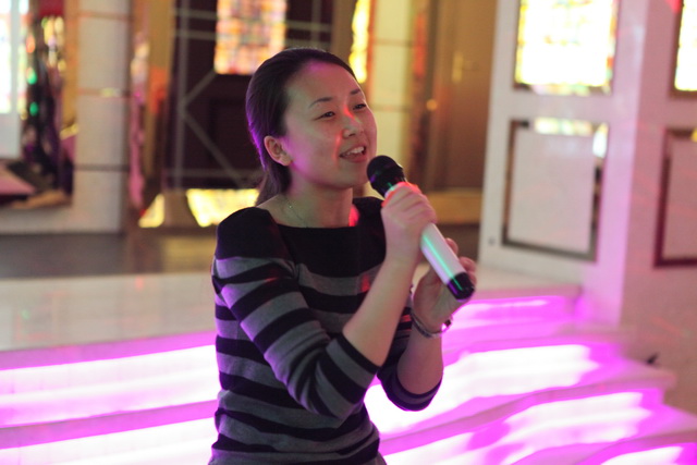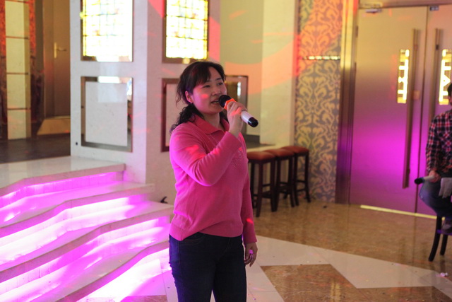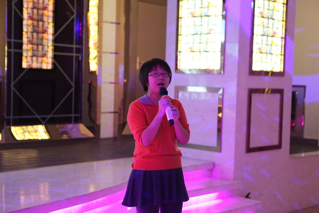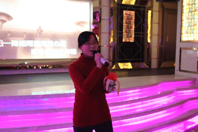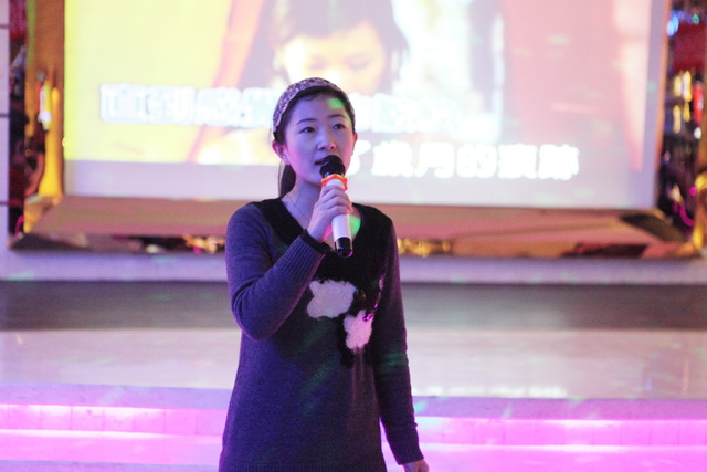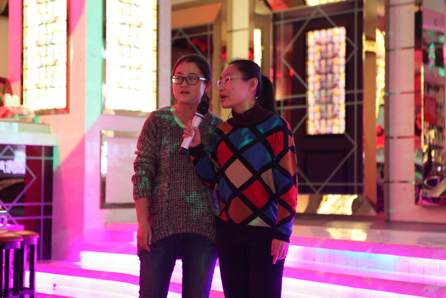 七年级组长张洁、数学教师王芳歌唱《我的歌声里》