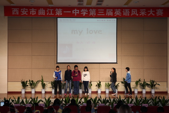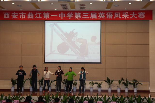 2012年11月27日下午,曲江一中举行初2014届A组英语风采大赛。2014届一、三、五、七班在个人演讲、情景对话、电影配乐、歌曲演唱四个环节展现自己的英语实力和舞台魅力。最终八年级一班、三班通过精彩的表现分别荣获本组第一、二名。