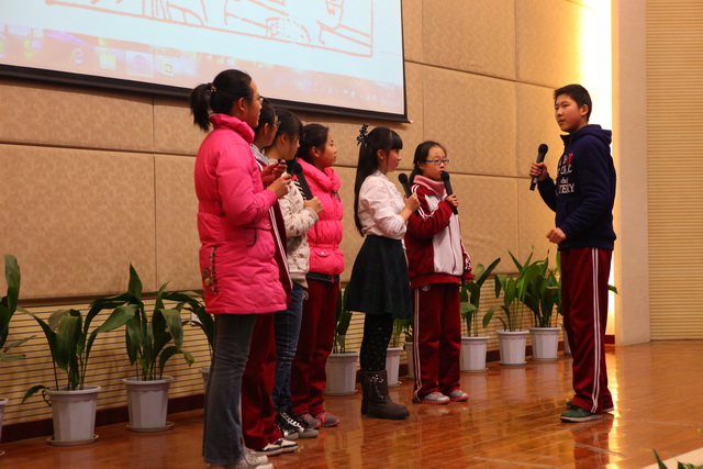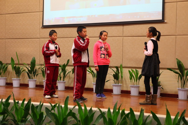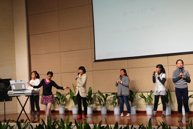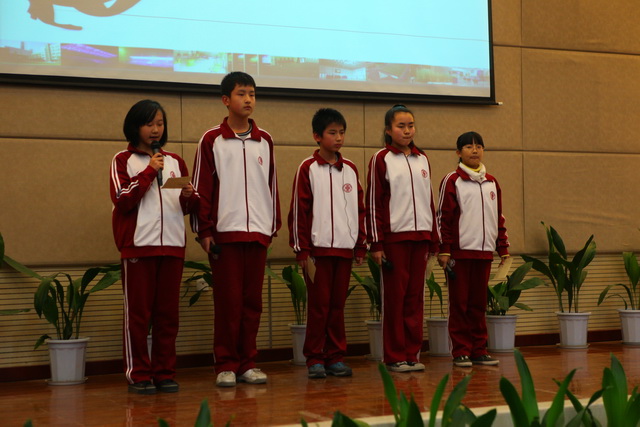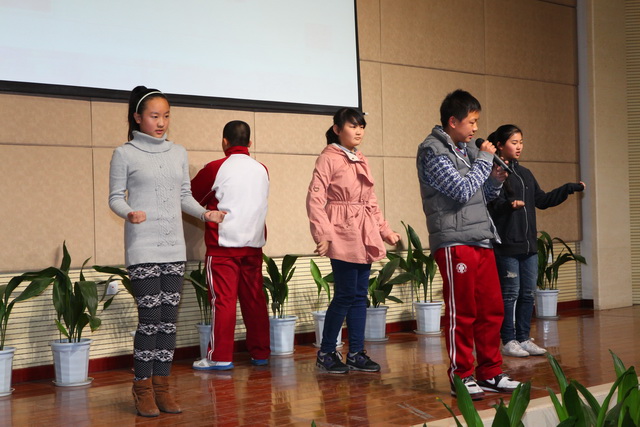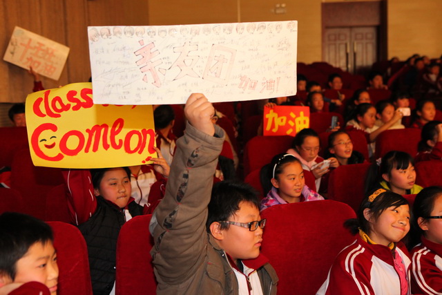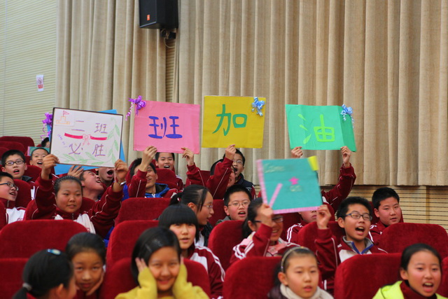 比赛由个人演讲、情景对话、电影配音、歌曲演唱四个环节组成。在五位小主持人激情的开场中拉开了帷幕。首先进行的是2分钟个人演讲,五位选手从容上阵,热情洋溢,就《My Best Friend》和《Say No to Junk Food》两个话题进行了精彩的演讲。四班选手严睿桐语言流畅,发音标准,激情洋溢,赢得了台下一片掌声;二班选手薛皓韦和十班选手党尚笛姿态大方,语言流利,赢得了评委的一致好评。情景对话在二班田子晗、焦点、薛皓韦三位同学的默契配合下顺利完成,台下的啦啦队声势浩大,喊出了每个班的气势和特色。接下来的电影配音环节,同学们以逼真的声音配合着生动有趣的画面,展示了自己台下刻苦努力的优秀成果。四班潘大河等的《冰河世纪》夸张大胆地再现了原版的经典,全场发出阵阵惊叹。其他四个班级选手也不甘示弱,六班张旭初等的《卑鄙的我》声音模仿幽默风趣,引发阵阵掌声。最后的英文歌曲演唱将现场气氛推向了高潮,十班选手程靖文和程韦淇的歌舞表演点燃了观众的热情,赢得观众和评委的一致好评,八班吉喆宇和雷秉鑫的一首《you belong with me》展现了班级的风采和特色。