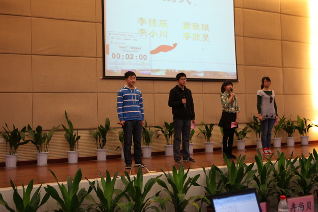 李小川、李欣昊、李佳辰、黄秋琪主持高2014届英语风采大赛