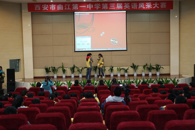 2012年12月4日下午,曲江一中第三届英语风采大赛高2014届英语风采大赛在报告厅如期举行。每位参赛选手在个人演讲、广告创意、电影配音、歌曲演唱四个环节展示了自己独特的英语实力和个人魅力。最终高2014届一班、四班分别获得了比赛的第一名、第二名。