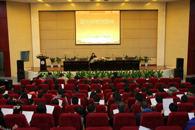 11月5日下午,曲江一中在报告厅召开了2012~2013学年第一学期期中考试安排会,全体教职工参加了此次会议。