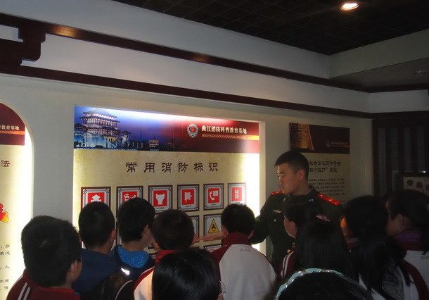 下午17时15分左右,在曲江安监局干事陈康的带领下,我校师生到达消防中队,消防中队的刘指导员负责接见并向同学们讲解有关消防的知识。所有学生列队跟随讲解员进行参观。