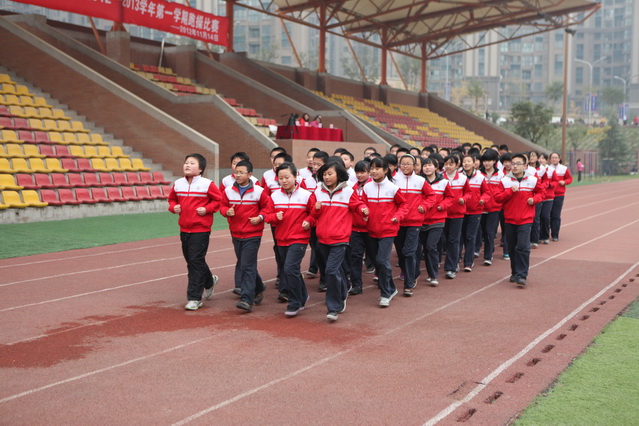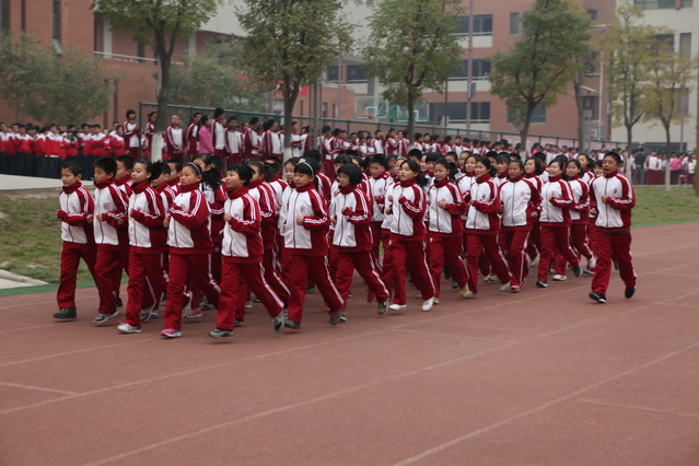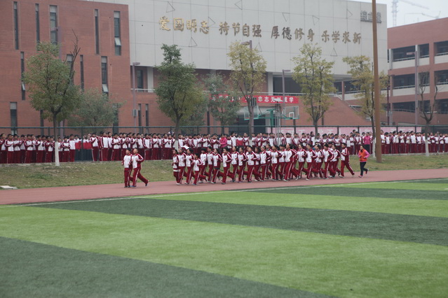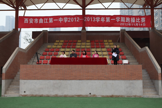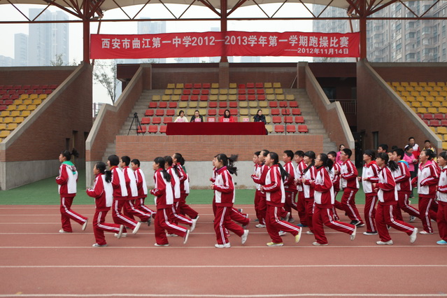 为大力弘扬体育精神,增强学生体质,全面贯彻落实《中共中央国务院关于加强青少年体育增强青少年体质的意见》精神,进一步掀起阳光体育运动新高潮,2012年11月14日,曲江一中在全校范围内举行了跑操比赛。