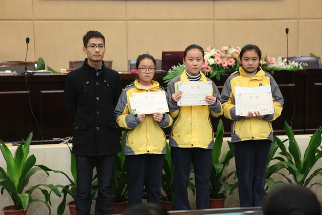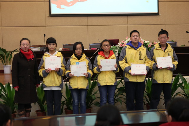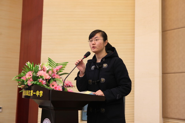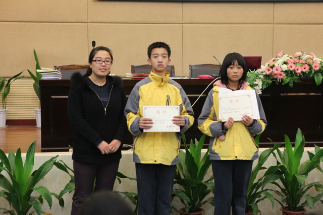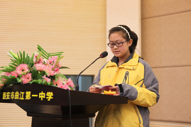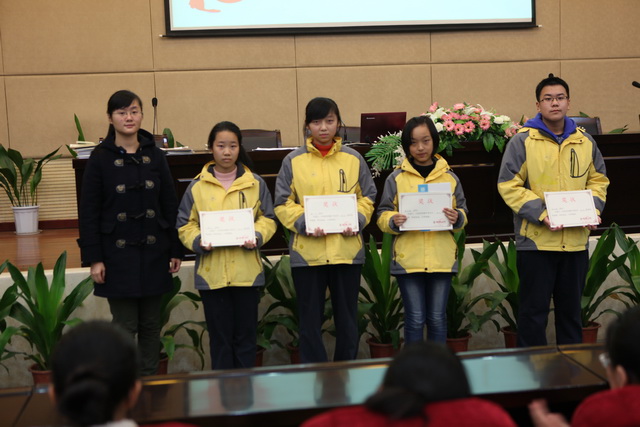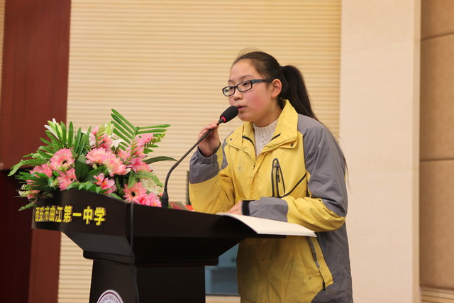 2014届1班的郭思怡同学作为精神文明获得者,信步走上领奖台,和同学讲述了自己近几个月来,在右手骨折的情况下,练习用左手生活、学习、考试的特殊经历,感染了同龄人,赢得了全场师生的热烈掌声。
