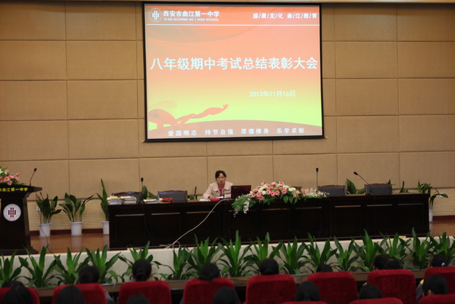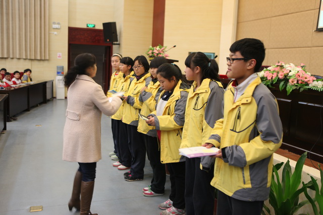 17时10分,初2014届学生以班为单位来到报告厅,列席11月份月例会。会议由年级组长陈金叶老师主持,会议主要对本学期期中考试进行反思、总结与表彰。