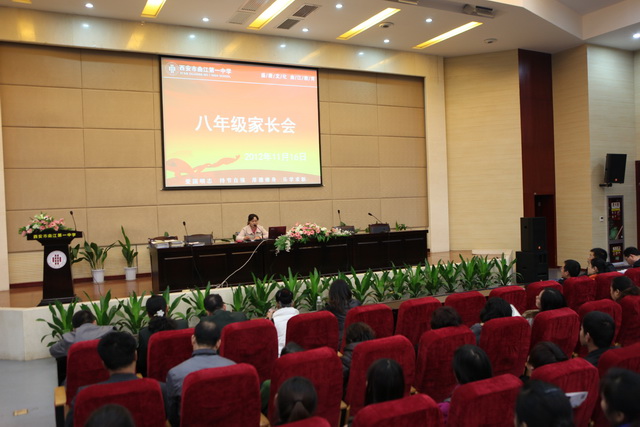 首先,陈老师向家长们汇报了学生自开学以来各班在学习、纪律、生活、学校活动等方面取得的骄人成绩,指出了各班现存的突出问题,希望家长和班主任加大沟通力度,及时反馈孩子在校、在家的表现,全面人文关怀,紧密跟踪,适度出击,帮助孩子树立积极阳光的心态,鼓励孩子培养健全的人格魅力,一心面对学业,为孩子们早日成人、成才、成功保驾护航。