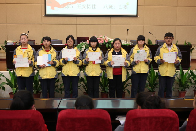 最后,陈老师做了总结发言。就一个月以来本年级的总体情况进行点评。陈老师首先表扬了本次期中考试中在“诚信考试”方面表现突出的同学,并指出本月以来,八年级在纪律、学习氛围、班级凝聚力等方面都有很大的进步,并希望同学们在下半个学期中继续保持,再创佳绩。