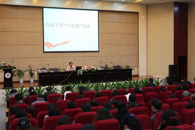 年级组长陈金叶做《为孩子“中途跑”加油》报告会