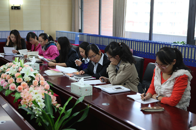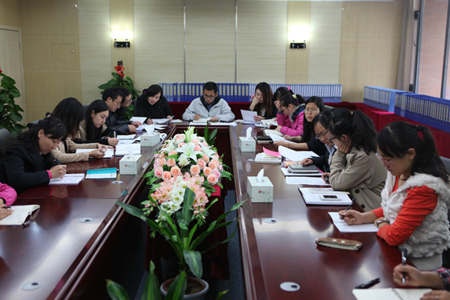 2012年10月19日上午,在行政楼二层会议室及A教二层教师交流室,由语文教研组和音美信综合教研组的老师组成评审小组,分别对前期收集的“低碳环保”征文和绘画作品进行了认真细致地审阅。