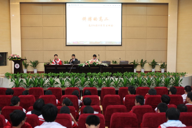 2012年10月18日下午,曲江一中高二年级月例会在校报告厅举行。全体学生在各班班主任的有序组织下参加了此次大会。