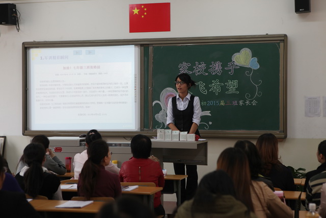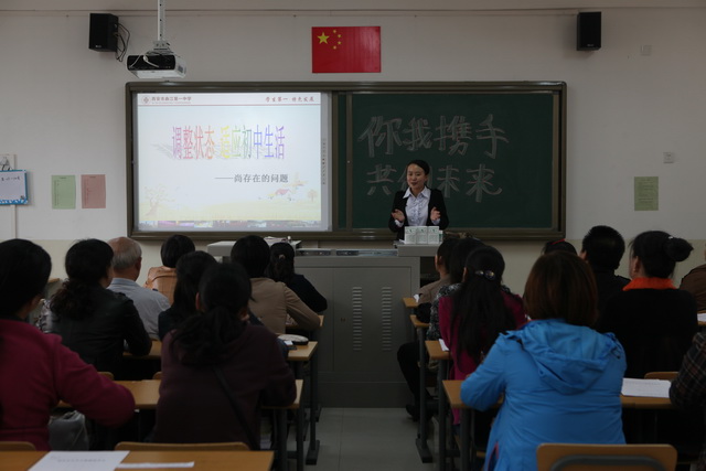 为形成学校、家庭、社会“三位一体”的教育合力,营造共同育人的良好氛围,深入推进实施素质教育,促进学生的全面健康和谐发展,塑造言传身教、教子有方的魅力家长,营造亲子融洽、相互关爱的家教氛围,使家庭和学校教育形成合力,共同构建素质教育新模式,努力促进学生身心健康发展。2012年10月20日13时30分,西安市曲江第一中学联合教育部十二五重点课题单位——北京思学通教育研究院共同举办“搭家校连心桥,谋孩子成才路”家长会授课活动,为家长提供更多、更好的帮助和指导。初2015届全体新生家长在曲江一中报告厅和各班级参加了此次活动。本次家长会由七年级组长张洁主持。
