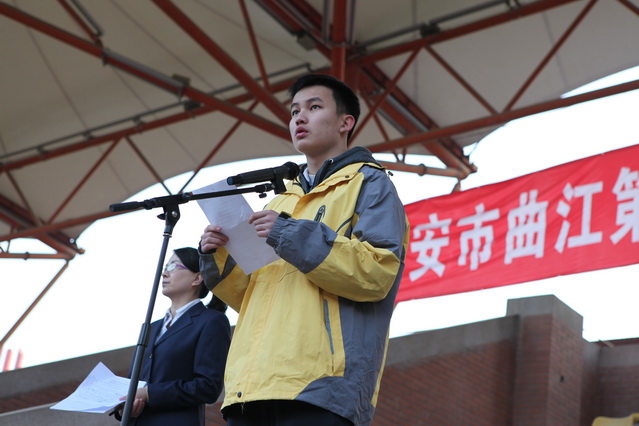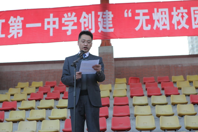 11月5日,曲江一中第十一周升旗仪式暨创建“无烟校园”活动启动仪式在学校操场举行,活动由政教处副主任刘瑜主持。
