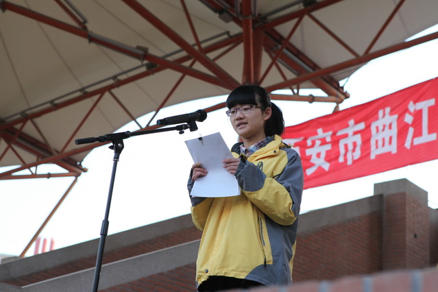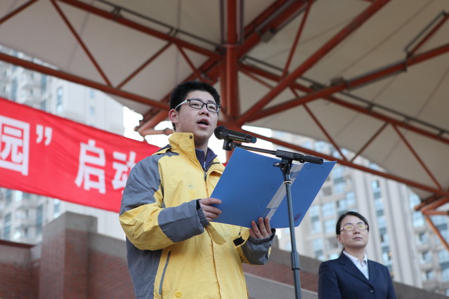 学生会主席王宇飞同学发表倡议——绿色呼吸 珍爱生命