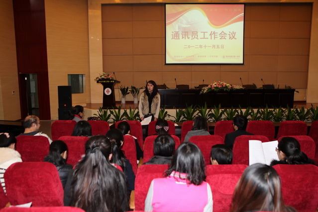 曹琦副校长首先发表讲话,她强调校园网和校报是我校师生交流的园地、对外宣传的窗口,教育教学信息的载体和校园文化建设的平台;当选各处室通讯员不仅是一份荣誉,更是一份责任,这份责任就是多观察,多报道,为校园网及校报提供高质量的稿件。