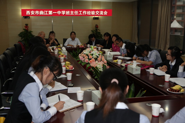 2012年9月25日下午17时,曲江一中初一年级班主任工作经验交流会在办公楼二层会议室召开,曲江一中校办兼政教处主任余爱东、政教处副主任刘瑜、初三年级班主任龚静、李博、初二年级年级组长陈金叶和班主任苏岳、孟丽静、初一年级年级组长张洁和所有班主任,以及特别邀请的师大附中隋达华、张炳勇、王芳三位老师共同参加了此次经验交流会,会议由余主任主持。