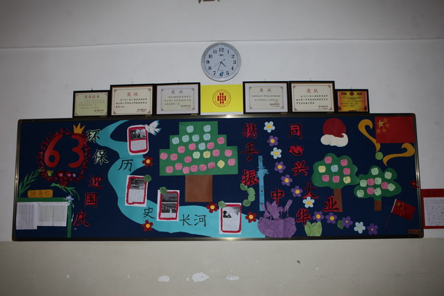2012年9月26日下午,全校以班级为单位组织了多样化的主题班会,政教处对各班的主题班会以及迎国庆壁报进行了巡回检查评比。