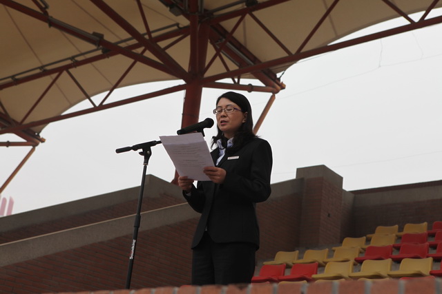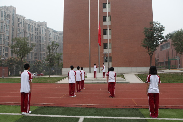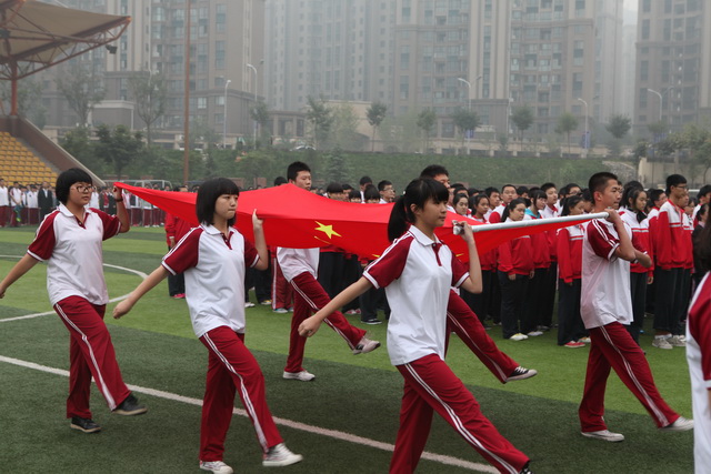 随后,高2013届5班海诚同学作了题为《我爱我的祖国》国旗下讲话。高2013届4班苗浩楠同学宣读了上周值周检查结果。最后,政教处副主任刘瑜宣读了上周宿舍卫生检查结果。