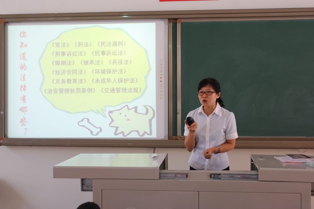 班会课上,班主任认真带领学生学习相关的法律知识,围绕社会中发生的各种案件实例,以通俗易懂的语言,阐述了未成年人易违规违纪的行为,深入浅出地给学生们上了一堂生动的法制班会课,并针对学生提出的法律问题解疑释惑,学生们踊跃发言,气氛异常热烈。