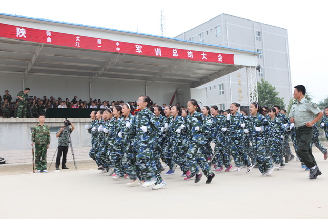 在阅兵式分列式检阅过程中,各个班级都表现优异,每个方阵都走得整齐有序,口号刚劲有力,气氛庄严,大家都以高涨的热情投入到了此次的阅兵式当中。高中部的花样方队整齐、快速变幻出“曲江一中”和“奋斗”几个字,令所有师生振奋,男子刺杀操的一声声“杀杀杀”字字铿锵有力,随后初中部的女子方队更是巾帼不让须眉,个个英姿飒爽。看着孩子们短短7天时间的蜕变,那一刻令在场的所有领导老师都心灵震撼,分外感动,许多班主任老师都噙满了泪水。