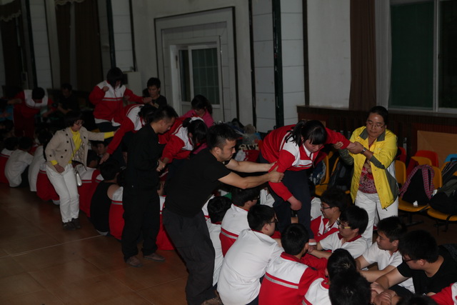 然而最后的“抢夺金沙江”项目也给大家留下了最深的印象和最深的触动。知道要从同学用手搭建起的人桥踩过,大家都充满了不解和不愿。但看着已经渡桥的同学因我们的吵闹一次次的返回,那些一直坚持的桥墩塌了又建,大家都抑制不住的红了眼眶。最终所有的同学都面对面的搭起手来,全年级近200名学子建起了友谊之桥,信任之巧,温暖之桥,承诺之桥,感恩之桥。手拉紧,桥不会断;心连心,情不会灭。忍住委屈,忍住疼痛,我们在,青春在,坚持在,情谊在,成功一定就在。有的同学一边过还哭着说“对不起”,这时作为桥墩的同学便会一直说着“加油”等鼓励的言语。桥墩渐渐的少了,渡桥成功的同学皆围绕着那些坚持到最后的“桥墩”,一边大声鼓掌,一边默默流泪。哭过笑过,我们胜利了!所有的同学渡桥成功了!此时不免明白了活动前教练让我们讨论的关于“承诺,责任,感恩”的话题,顿时有所感悟。那些所有在我们前进路上陪伴我们帮助我们的人,都沉重的如同暖在心口的挚宝。