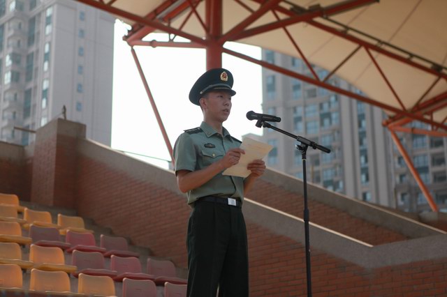 随后,教官代表,住校生代表张伟然同学进行了发言。张伟然同学表示,自己会用珍惜机会,坚决服从教官教诲,不辜负学校的良苦用心和家长的殷勤期望,养成良好的生活习惯和学习习惯,做一个合格的新时代中学生,为学校和家庭增光添彩。