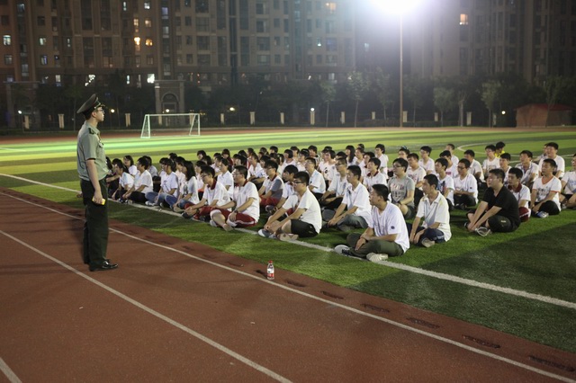 晚上,同学们在操场席地而坐拉歌,教官们精彩绝伦的表演更是迎来了一阵阵喝彩声,他们威武的身躯,凛然的神情,一个个热血沸腾的年轻人被铸成一个个铁铮铮的汉子。让我们所有在场的观众欢呼雀跃,惊叹于他们的威武神勇!