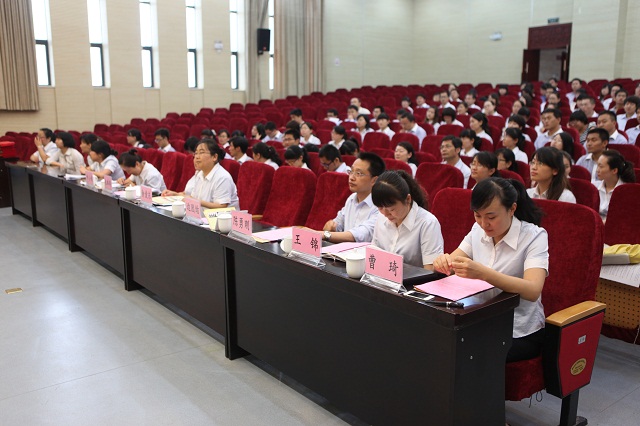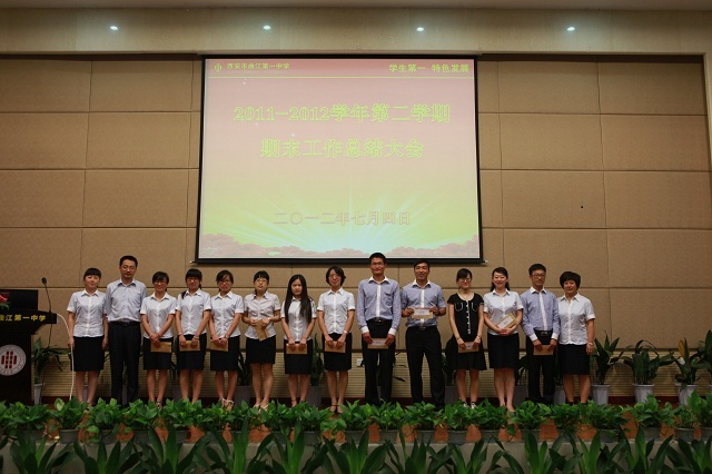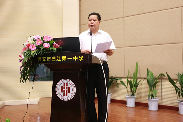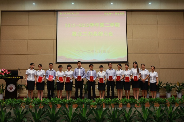 曹琦副校长首先为大家逐一介绍了各位新入职的教职工,随后宣读了《西安市曲江第一中学关于聘任部分处室副主任、年级组长的决定》西曲江中发【2012】5号文件, 由曲江一中校长边团结宣布聘用刘公潜同志担任教研室副主任兼高一年级组组长、高秋棉同志担任教务处副主任兼高三年级组组长、刘瑜同志担任政教处副主任兼初三年级组组长、张洁同志担任初一年级组组长。
