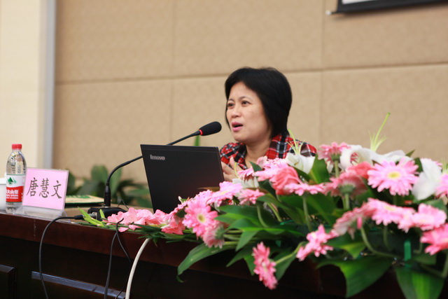 余主任首先回顾概括了昨日的研修内容,并再次诚邀唐主任的精彩讲演。续接昨日内容,唐主任对君子的为人处世等社会人格做了深度而形象的分析之后,又与在座老师分享了学生可爱智慧、精彩纷呈的学习成果,并对她的整个教学活动设计与成果做了综合说明。主讲内容完结之后,唐主任热情邀请在座各位老师对教学实践中“君子”内容的设计体会进行互动交流。曲江一中金慧、罗红梅老师结合自己的教学实践,分别详陈了各自教学的感想、困惑以及自己独到的见解,并与唐主任进行了深度交流。