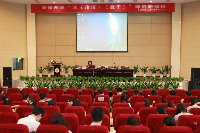 7月11日上午,海峡两岸“读《论语》《孟子》”师资研修班在曲江一中报告厅继续进行。主讲嘉宾台湾北一女中唐慧文主任以其深厚的国学素养、优雅的谈吐与曲江一中、师大附中等六所学校的老师们一起完成了对“《论语》中的君子”这一主题的研修培训。此场研修培训由曲江一中办公室兼政教主任余爱东老师主持。
