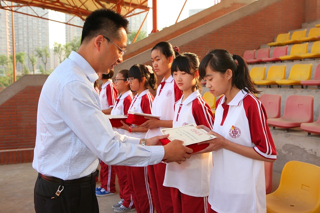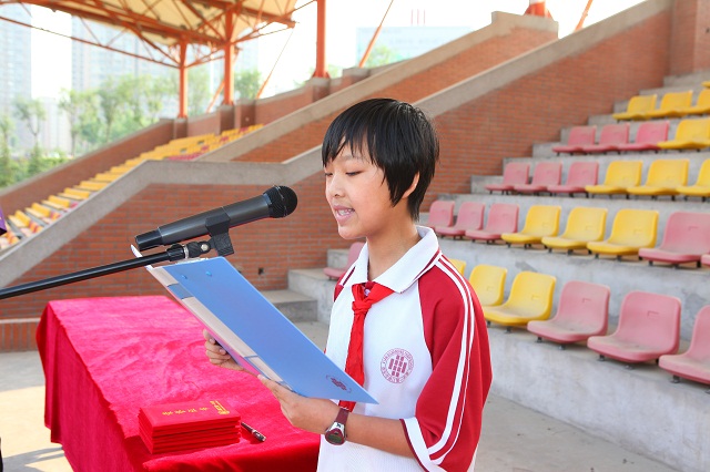 常务副校长陈勇刚为优秀少先队员颁发证书