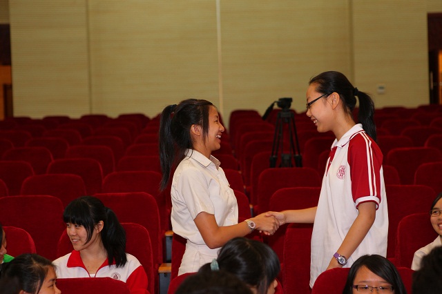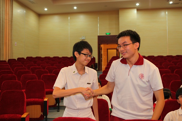 我校高一学生王征新加坡维林中学学生姚诗仪随后分别代表两校学生发言。两名同学都表达了对交流活动的期盼之情,并表示在接下来的一天半时间里将会更深入的交流,结下深厚的友谊。